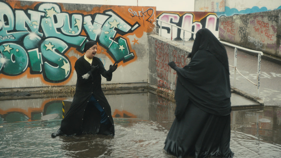 Pour le reste, Djamel Bensalah s’est fixé un mot d’ordre, s’éloigner du point de vue « bon enfant » de Neuilly-sa-mère et explorer un terrain plus déjanté. Par certains aspects, mission est accomplie, car Beur sur la ville se déroule de bout en bout sur un rythme et un volume hystériques, dont les deux acolytes du héros sont les plus fiers représentants. Les scènes les plus réussies capitalisent sur une tonalité à la limite du politiquement incorrect, comme cet épisode où, pour infiltrer la partie de la mosquée réservée aux femmes, l’équipe de police se dissimile sous des burqas - la séquence se terminant en combat d’arts martiaux sous voile intégral. Outre les têtes d’affiche que l’on est plutôt content de retrouver dans un univers et des rôles décalés, comme Josiane Balasko, Sandrine Kiberlain (décidément à l’aise dans une réplique de la Trinity de Matrix), et même Jean-Claude Van Damme ( !), le film sert également de crash test pour Booder, aperçu jusqu’ici dans des prestations comiques sur scène et des secondes rôles, et chargé de porter le film sur ses épaules. Le résultat est encourageant, car c’est lui qui vient souvent calmer la ligne un peu trop survoltée et épuisante du film. Principal point à regretter, la réalisation elle-même, qui cumule les tics de montage et un mauvais goût mal assumé. Reste maintenant à savoir si les spectateurs qui avaient pris en masse le train pour Neuilly embarqueront avec Djamel Bensalah pour Villeneuve-sous-Bois...