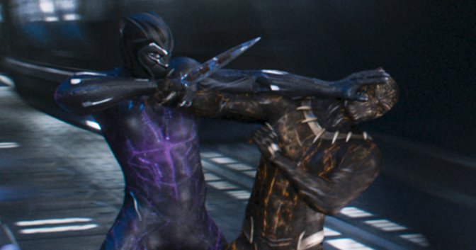 Malheureusement, l’adaptation fidèle et l’ajout d’une portée politique bienvenue ne suffit pas à insuffler le souffle épique nécessaire à la réussite d’un tel film. Le personnage de Killmonger, joué par le génial Michael B. Jordan, est certes moins caricatural et porté par des motivations politiques plus complexes qu’à l’accoutumée mais sa mutation dans le second acte en dictateur va-t-en-guerre en est d’autant plus grossière. Le récit reprend de manière assez classique l’histoire du comics et l’on retrouve assez fidèlement l’arc initié par Don McGregor en 73 et celui des années 2000 de Christopher Priest dépeignant la prise de pouvoir du Wakanda par Killmonger. Les scènes de duels sur la cascade sont transposées quasiment case par case mais on perçoit malheureusement les fonds verts. Le propos du film est ambitieux mais se perd dans les considérations tièdes sur l’exercice du pouvoir et le courage d’un souverain. Les dialogues politico-familiaux de T’Challa sont extrêmement pauvres et le charisme du sympathique Chadwick Boseman est un peu juste pour donner vraiment corps à l’icône féline. Film de super-héros oblige, des scènes d’action passables jalonnent le récit et redonnent du rythme à une intrigue assez molle. Le débordement d’effets spéciaux peu inspirés et un découpage pas toujours lisible sont par ailleurs vraiment préjudiciables à l’univers graphique du film.