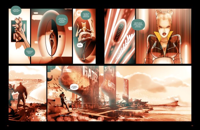 Un dernier mot sur le cahier graphique disponible en fin d’ouvrage, qui complète magnifiquement l’imaginaire de Blackfury. Tout comme les nombreuses doubles planches présentes durant le récit, le détail des dessins de Stéphane Goddard est incroyable.