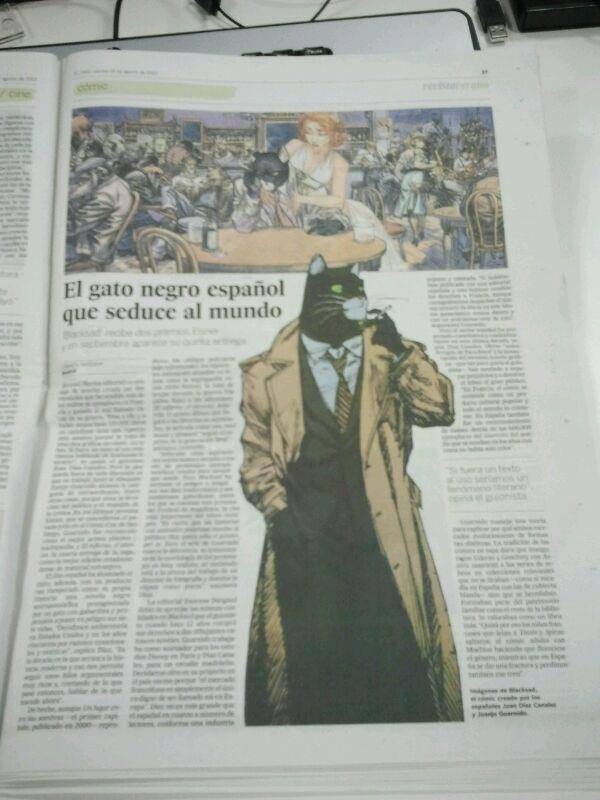 Pour tous les non hispaniques : Blacksad a une pleine page aujourd’hui dans le journal le plus lu d’Espagne : El Pais.