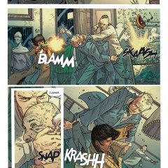 Comme Andres Guinaldon est de retour aux manettes de l’illustration, il n’y a aucun problème pour se remettre dans le bain : rues moites et cosmopolites, imperméables et lunettes rétro, boutiques étranges et voitures volantes, les références sont notables. La violence semble avoir été décuplée avec le nombre des années, et après une trilogie 2019 qui montait crescendo, 2029 est bien parti pour battre un record de morts dès le début. Cous brisés, nez cassés, yeux arrachés, les membres humains sont mis à mal. Il s’agit d’un marqueur de Blade Runner : la une violence est assumée. Pour le reste, pas de surprises : le scénario à rebondissement est épaulé par un dessin maîtrisé.