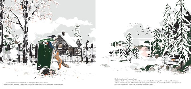 Résumé : Lorsqu’il aperçoit un renard piocher dans la poubelle de sa maison puis s’enfuir dans les bois, un jeune garçon enfile ses moufles et son manteau et part à sa poursuite. Un jeu de cache-cache démarre alors, mais c’était sans compter la brume qui envahit la montagne, va perdre le garçon et l’amener à faire de dangereuses rencontres.