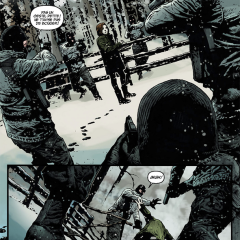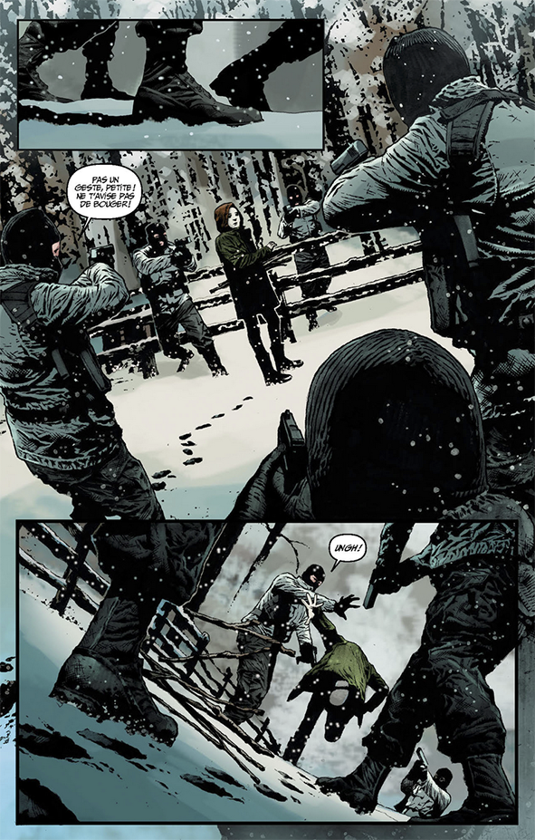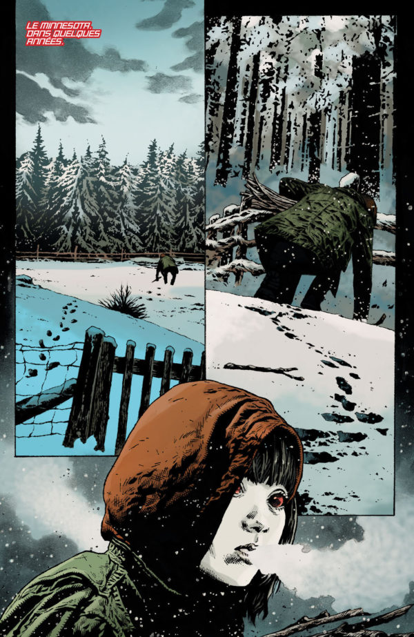 Ce nouveau run de Bloodshot imaginé par Jeff Lemire enchevêtre deux récits menés en parallèle. L’un, dessiné par Lewis LaRosa, se situe « de nos jours » quand l’autre, illustré par Mico Suayan, prend place quelques années plus tard, alors que la petite Jessie a une dizaine d’années et que Bloodshot est porté disparu. L’alternance de deux temporalités donne un rythme soutenu à un récit toujours aussi sanglant. Entre secte sudiste au fin fond de la forêt et groupe paramilitaire surentraîné, Bloodshot ne manque pas d’ennemis, avec une galerie de personnages hauts en couleurs. Mention spéciale aux dessins réalistes et très dynamiques dans la représentation des scènes d’action de Mico Suayan.