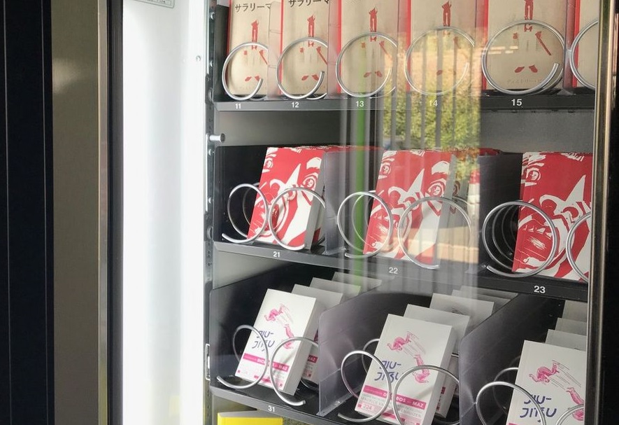 Par leur petite taille, 7,6 x 11,6 cm, on a pensé les proposer en distributeurs automatiques. Cela permet de rapprocher le Lecteur de l’Auteur et nous permet de créer un nouveau réseau de distribution. Le pourcentage que prend le libraire (30% ) est trop élevé pour notre seuil de rentabilité. Nous voulons également que 20 % du prix d’achat, 1 € par livre, aille aux créateurs.