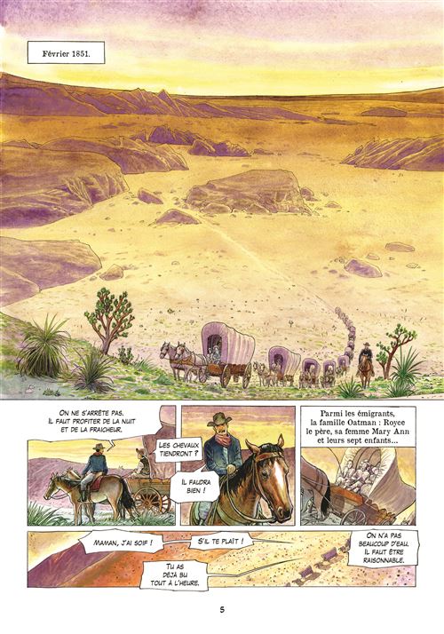 Résumé : Après avoir assisté à l’anéantissement de leur famille par une tribu indienne, Olive et Mary Oatman sont capturées et réduites en esclavage par les Yavapais. Leur destin bascule pourtant lors d’un échange entre tribus : les deux sœurs deviennent monnaie d’échange et rejoignent les Mohaves, un peuple pacifique auprès duquel elles retrouvent peu à peu autonomie et dignité. Accueillies par des parents adoptifs, elles apprennent un nouveau mode de vie et participent librement aux rites initiatiques réservés aux adolescents de la tribu. Un jour, un homme blanc se présente devant le chef mohave. Mary choisit de le suivre. Elle quitte alors sa famille adoptive et retourne dans le monde des colons blancs, une nouvelle page de vie commence. Cet album raconte l’histoire bouleversante d’une femme qui sut faire preuve de persévérance, d’ouverture et d’acceptation.