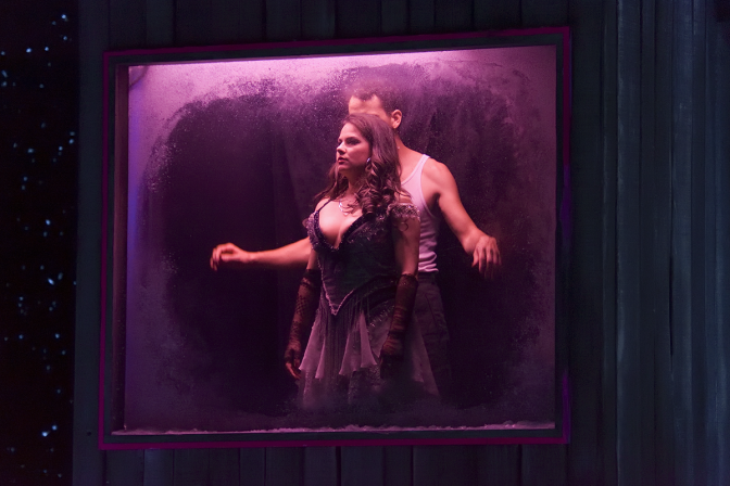 La seconde partie est moins tubesque alors que l’histoire s’enfonce dans le dramatique. Les mélodies sont moins connues, mais la mise en scène de Pauline Bureau prend adroitement le relais. On pleure encore, mais de compassion, ce qui est plus agréable quand on est aussi bien lové dans un fauteuil de velours. Les décors et lumières sont équilibrés avec discernement, entre projections d’images et décors en dur. Posée sur une boîte de nuit dans les rose et bleu, la chambre de Rodolphe est matérialisée par une scène haute faite de quatre poteaux soutenant une charpente. On aperçoit au loin, sous la lune, la tour Eiffel en construction. Les néons du club de jazz clignotent. Sommes nous à Montparnasse ? A Saint-Germain ? En 1880 ? 1950 ? Ou finalement en 2018 ? Le rajeunissement est réussi si il est intemporel.