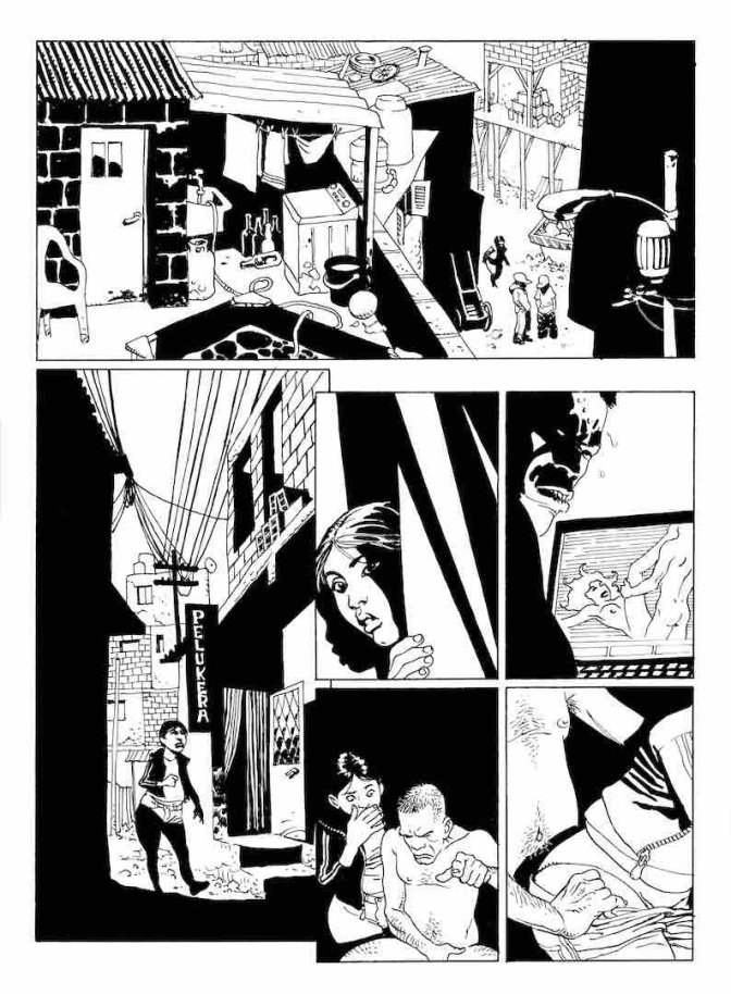 Le passage de Rosmery des bidonvilles aux quartiers cossus de Buenos Aires nous offre une fresque très réaliste des deux extrémités de la société argentine, deux mondes qui se croisent sans se voir. Eduardo Risso offre un bel exemple de maîtrise du noir et blanc et dessine avec la même aisance l’intérieur des bidonvilles et les hôtels particuliers de Buenos Aires. Au-delà du polar qui ferait de Rosmery un Alack Sinner au féminin, Bolita porte un regard éclairant sur l’Argentine contemporaine.