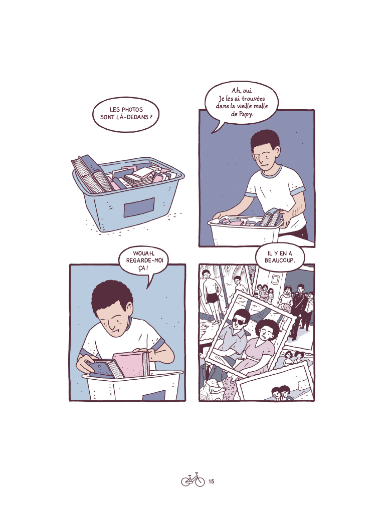 Pour révéler ce côté cru, réel, le dessin s’est fait en simplicité et douce élégance. Des yeux en points noirs, des vêtements intemporels que l’on croirait empruntés à des pages d’Hergé, il y a quelque chose d’un style nostalgique, d’un autre temps, qui se dégage tranquillement. On est presque surpris quand l’auteur dessine les cases de discussions lorsqu’il évoque ses avancées à sa petite amie, comme si ce côté contemporain n’était pas à sa place dans ce roman graphique qui, s’inspirant à chaque fois de photos de famille. La palette de couleurs s’adapte parfaitement à ces décalages de temporalité, jouant sur les tons gris ou sépia pour plonger dans le temps.