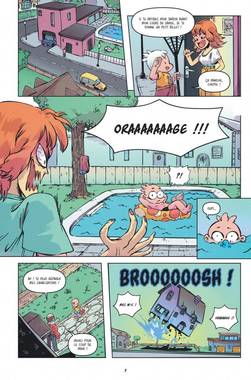 Critique : Avec Bouhland, Rours s’est probablement dit « Tiens, si je créais un Poudlard plus déjanté, où les gags de Kid Paddle pourraient allègrement côtoyer un univers fantastique de monstres à la Hotel Transylvanie », et le mélange qu’il a obtenu est à la fois très drôle et très original. Drôle car l’enchaînement se fait à la manière d’une BD humour, du moins au début, avec des situations à chaque fois inconfortables pour le héros, ce jeune Orage qui va déguster du feu, de la glace, des coups à foison, pour récolter bosses et pansements exagérés, même lorsqu’une fille vient lui déclarer sa flamme... Au-delà de cet aspect potache, c’est une lecture plutôt fine des moments clefs de l’école (au sens large du terme, puisqu’elle englobe un internat) qui se déroulent avec dérision : cours d’EPS en piscine en lévitation, jeux dans la cour de récréation, passage au self... Les personnages sont multiples et cela fait du bien de ne pas se cantonner à quatre ou cinq éléments reconnaissables pour embrasser dès le début le foisonnement d’une telle institution. En effet, avec ses professeurs, surveillants, camarades, employés de cantine, les personnages secondaires vont et viennent en premier ou arrière-plan pour une action directe ou future dans bon nombre de situations comiques, jusqu’aux cent dernières planches qui donnent une trame plus romanesque et suivi à un récit qui aurait pu se cantonner à un simple album souvenir de Bouhland, mais qui regorgera finalement bien d’aventures.