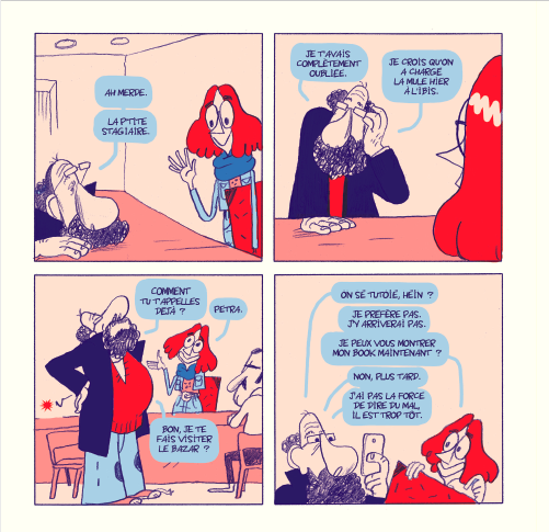 Résumé : Raymond fait de la bande dessinée depuis des années. Il continue, peut-être davantage par habitude que par convictions, ces dernières paraissant bien émoussées. Lors du festival d’Angoulême, il est rejoint par Petra, une jeune autrice qu’il a acceptée comme stagiaire. Face au caractère plombant de son mentor, la jeune femme déchante… mais n’a pas dit pas son dernier mot.