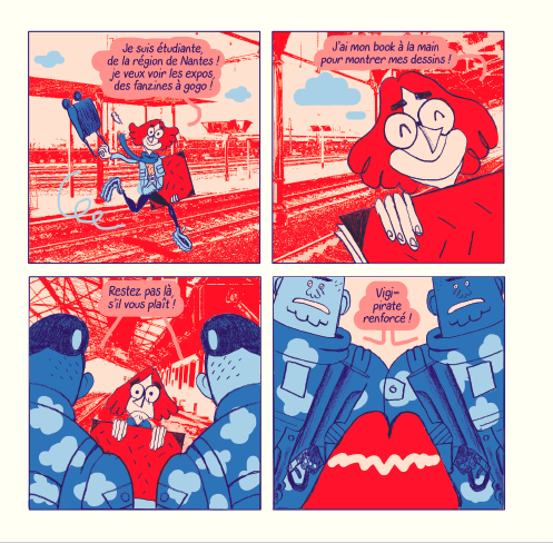 Comme à l’accoutumée, Hervé Bourhis est parfaitement à son aise avec la narration. Celle qu’il élabore ici se développe en quatre cases par page, est dynamique, ponctuée de rebondissements et pimentée par le recours fréquent aux rimes, les dialogues tenant alors du poème ou de la chanson. Cela rend le récit pétillant, décalé et très agréable à lire.