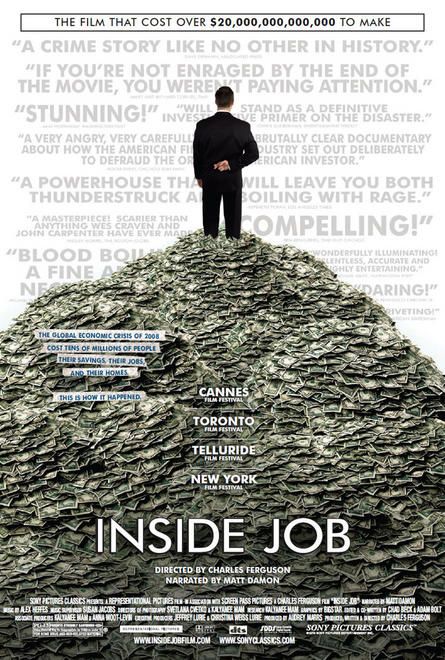– Inside Job, docu choc sur la crise financière qui avait enflammé le box-office français en novembre dernier, poursuit sa brillante carrière aux USA grâce à une nomination dans la catégorie documentaire : le film retrouve le chemin des salles et avec 123.000$ ce week-end fait un gain de 407% dans ses recettes. Il a empoché 3.8M en 17 semaines !