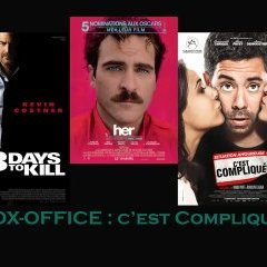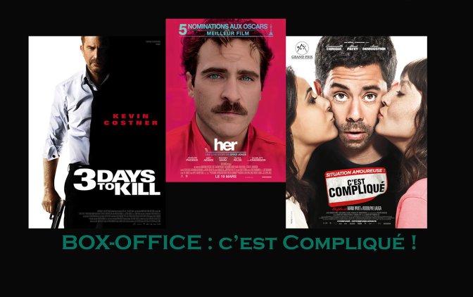 La comédie française s’offre 3 titres dans le top 10, dont une nouvelle entrée réalisée par Manu Payet qui ne convainc pas. Pour EuropaCorp et 3 Days to kill, c’est le flop. Spike Jonze triomphe avec son dernier opus, le sophistiqué Her.