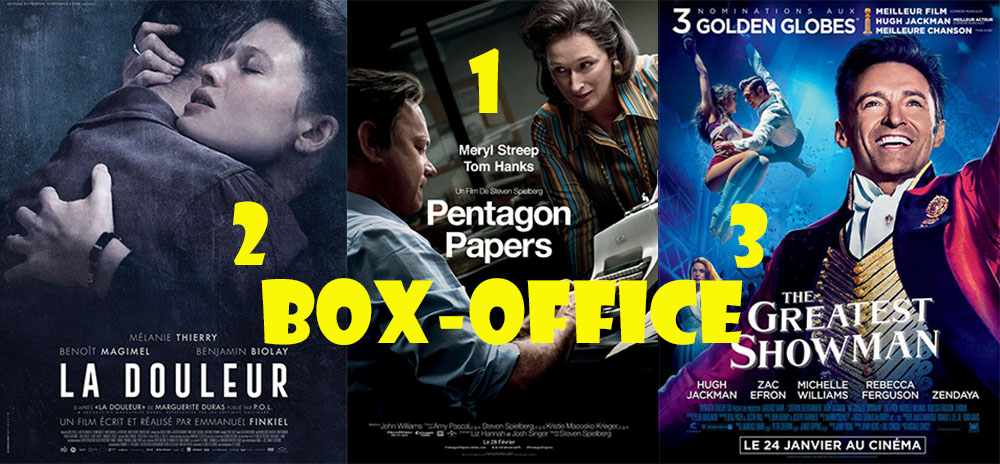 Déception attendue pour The Greatest Showman, malgré le passage étoile de Hugh Jackman sur Paname : le musical doit se contenter de 858 entrées dans 21 salles (moyenne de 41). Le film avait mal démarré aux USA et est devenu un gros succès, on attend de voir à quel sauce ces gens du cirque seront mangés.