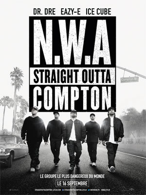 N.W.A. Straight Outta Compton, tiré de l’histoire du groupe N.W.A (Nigass Wit Attitudes), dont sont issus notamment Dr. Dre et Ice Cube (qui produit aussi le film), est réalisé par F. Gary Gray. On y retrouve notamment O’Shea Jackson Jr., Corey Hawkins et Jason Mitchell.