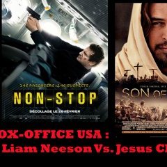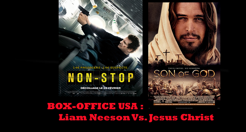 Démarrage solide pour Non-stop, le dernier action flick avec Liam Neeson. Non seulement cette co-production française met à mal 3 jours à tuer d’EuropaCorp (-60%, 20M$ en 10 jours), mais en plus se permet de barrer la route aux ouailles de Son of God, la production Fox destinée aux spectateurs religieux du pays. Avec 30M$ dans 3.090 salles, le thriller efficace de Jaume Colle-Serra fait frissonner de plaisir l’Amérique, laissant la tranche conservatrice de l’Amérique savourer Son of God en masse, puisque ce dernier a tout de même empoché 26.5M$ dans 3.260 cinémas. Rassurez-vous, cela ne reproduira pas en France. Amen.