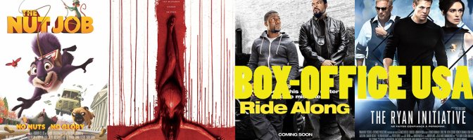 Le blockbuster se fait voler la vedette par une comédie afro-américaine avec Ice Cube et Kevin Hart, Ride Along -(Mise à l’épreuve en VF), qui est un triomphe inattendu pour Universal avec 41M$ dans seulement 2.663. Le studio campe également en 2e place avec le film de guerre hyper violent Du sang et des larmes, qui permet de remettre sur les rails Mark Wahlberg : 23M$ pour ce 2e week-end (-38.6%) et un total de 74M$. Même le film d’animation d’Open Road The Nut Job se situe au-dessus du dernier Jack Ryan (20M$, dans 3.427 salles).