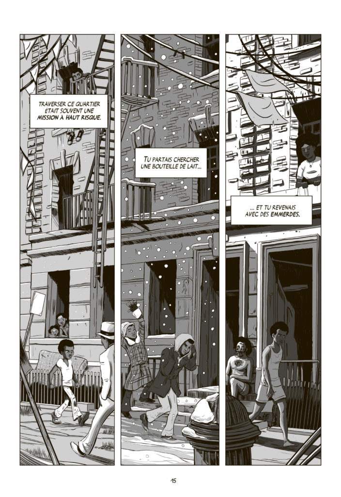 Le graphisme colle au récit. Le dessin semi-réaliste garde un côté graphique, en référence au graffiti. Les compositions amples, les dialogues courts sont au service d’une narration nerveuse, dure et âpre, comme le south Bronx. On tremble pour les personnages, et les surprises tombent au détour d’une page.
