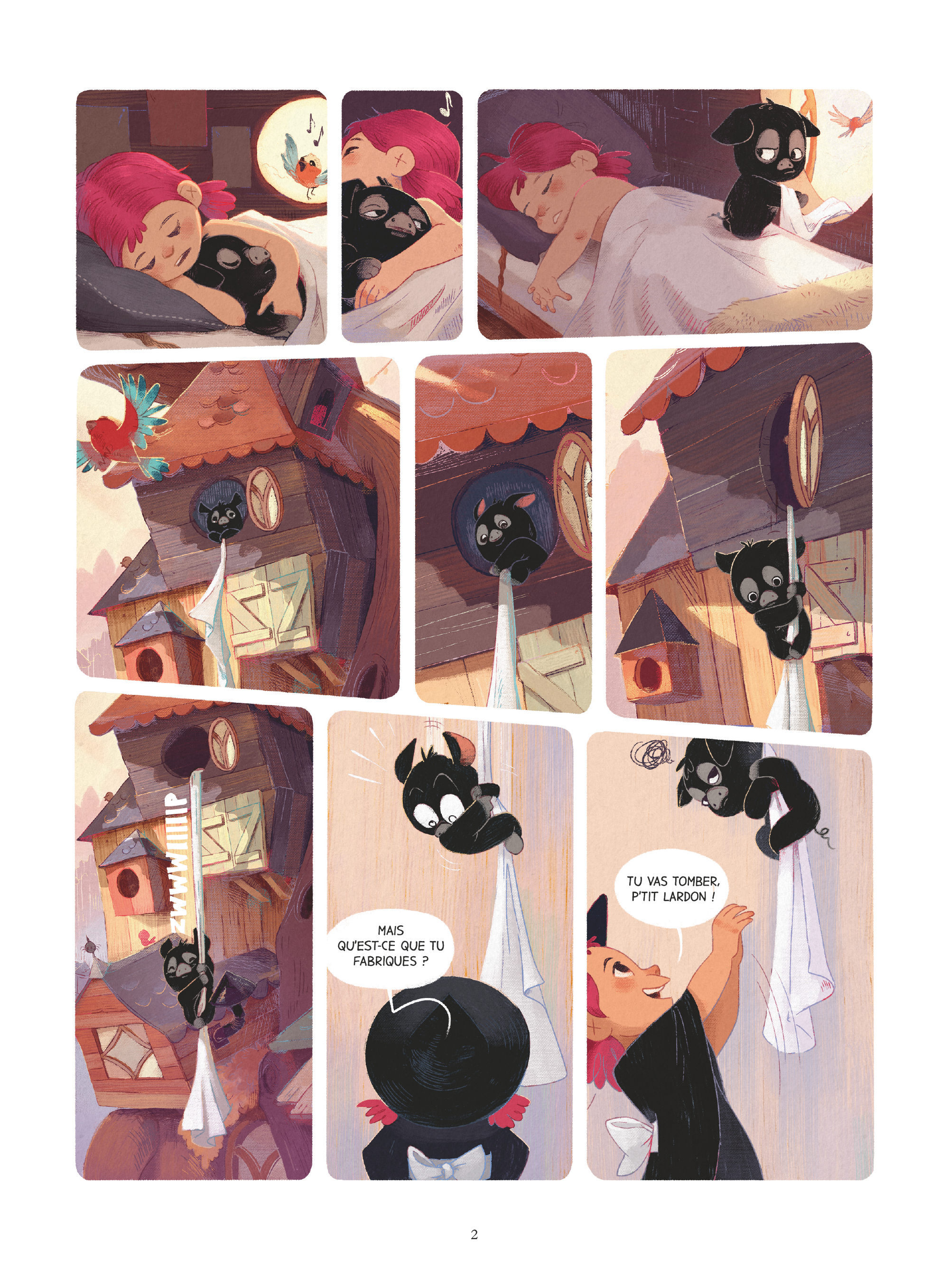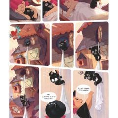 Grâce à la passion pour la botanique de la mère d’Hugo, nos trois amis vont découvrir une piste et se lancent sur les traces du Lys des Grenouilles, une plante magique que l’on ne trouve qu’à la source du cours d’eau qui coule dans le village. De son côté, Hubert a une idée bien moins dangereuse pour permettre à Brume d’en apprendre plus sur son passé … une potion de mémoire ! Encore une fois, comment ne pas succomber à l’attendrissant Hubert dessiné par Carine Hinder ! Toujours aussi drôle et mignon !
