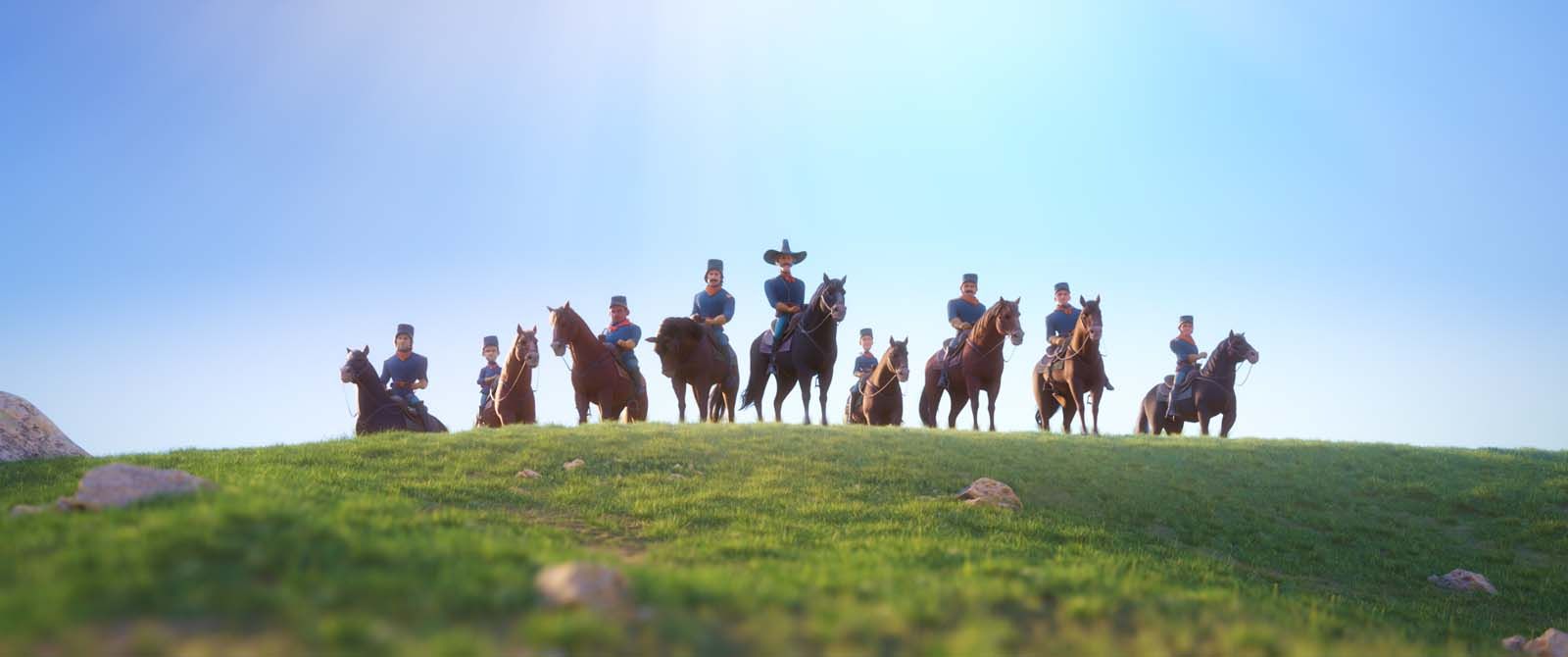 Ce trio aussi hétéroclite que créatif nous entraîne dans un monde coloré façon western avec cow-boys, Indiens, faux méchants et vrai gentils, et une sorte de chasse au trésor dématérialisée, portée par les valeurs familiales et le dépassement de soi. Les péripéties et rebondissements sont juste assez magiques pour ne jamais tomber dans le piège de la caricature. Bien au contraire, ils captent l’attention du jeune spectateur tout en le sensibilisant avec tact à des sujets profonds qui emporteront l’adhésion de tous. Les expressions des personnages sont parfaitement rendues grâce à un graphisme précis. Les visages ronds, éclairés de grands yeux rieurs de nos trois jeunes héros, participent activement à répandre bonne humeur et légèreté même dans les moments les plus sombres, car il n’est pas ici question de se prélasser dans un monde artificiellement idéal. Un adorable petit chien blanc et quelques bisons bien dodus complètent ce casting avenant.