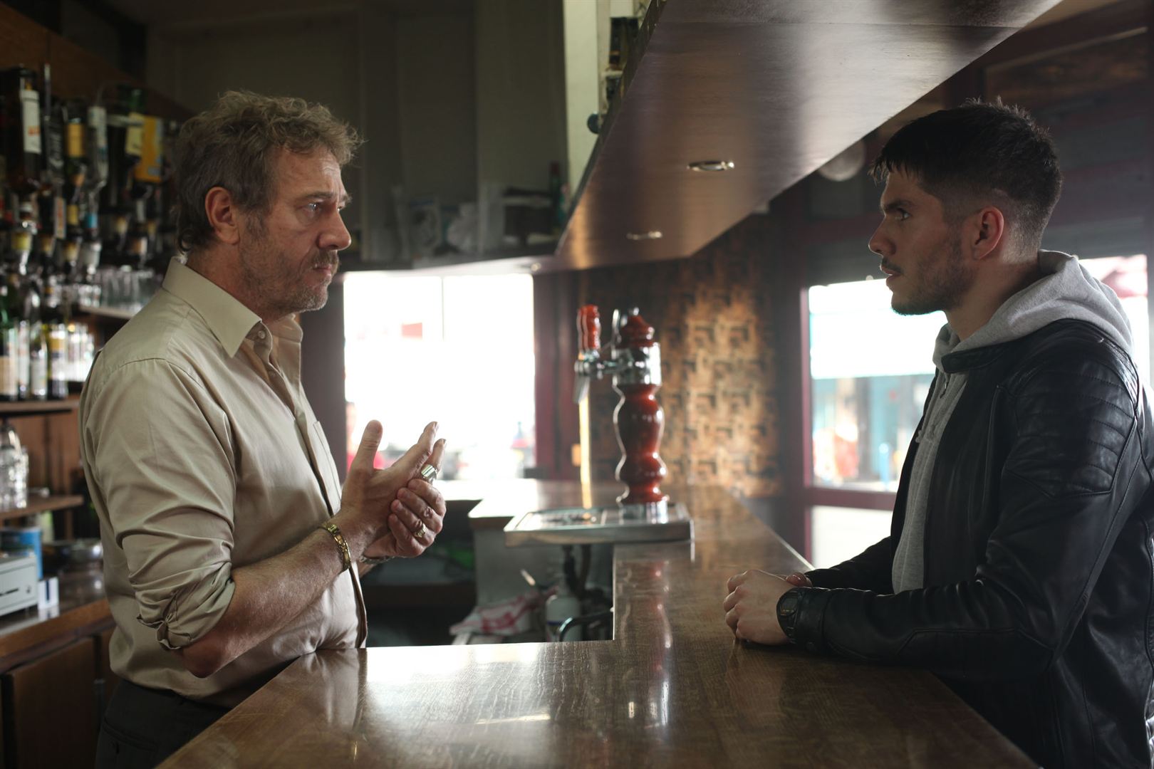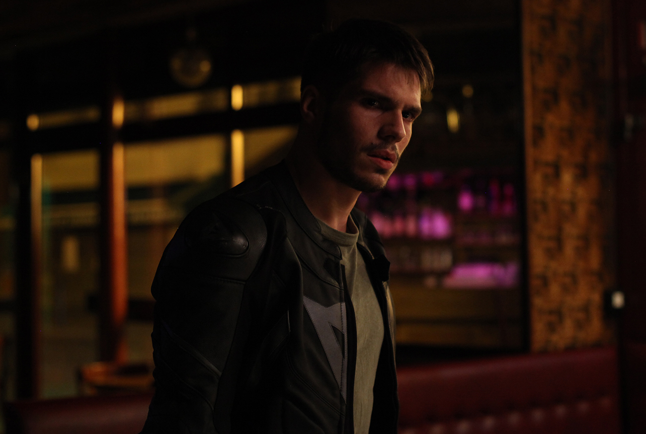 Si la violence est omniprésente jusqu’à devenir oppressante, elle est rendu supportable grâce à l’humanisation discrète dont sont imprégnés les personnages, même les plus terrifiants, les rendant sensibles malgré eux grâce à la complicité de comédiens maniant à la perfection l’art de la nuance. François Civil, entre détermination et fragilité, porte avec poigne le film du début à la fin et suscite une empathie instantanée. Caracolant à la vitesse de l’éclair sur son monstre d’acier, il dégage une présence magnétique renversante. Dans la peau de ce Tony renfermé et peu bavard, uniquement concentré sur l’action il sait trouver les regards justes et les attitudes appropriées pour laisser passer la parfaite dose d’émotion. Face à lui, Olivier Rabourdin se glisse avec un plaisir communicatif dans la peau de ce truand menaçant et ambigu. Il nous brinquebale sans ménagement entre chaud et froid, capable d’affirmer avec aplomb et sincérité de grands principes moraux, puis dans la minute qui suit de se comporter en chef de clan implacable. Entre ces deux rôles marquants s’insinuent Moussa, un personnage dur mais attachant finalement assez proche de notre héros à ceci près qu’il n’a pas eu la chance de tomber du bon côté de la barrière sociale, et Jordan, petite frappe tout à la fois drôle, inquiétante et imprévisible que Samuel Jouy habille de toute la diversité de son jeu tant à travers son look que son phrasé. Il est le catalyseur de la rage de Tony et contribue à accélérer la tension latente. S’il s’agit assurément d’un film doté d’une puissance toute masculine, la présence de Leïla, femme blessée mais forte, apporte une douce note de romantisme à ce polar noir que le réalisateur a tenu à parsemer de couleurs vives, loin de l’aspect délavé souvent associé à ce type de film.