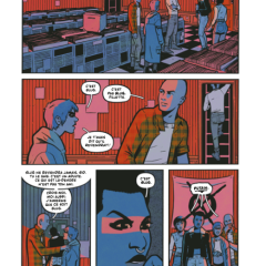 Il y a clairement du Stephen King dans le scénario horrifique de Matthew Rosenberg, qui nous tient en haleine grâce à son découpage hyper rythmé, son sens du suspense et l’originalité de son univers (des gosses qui vénèrent des vinyles, il fallait y penser). C’est où le plus loin d’ici ? n’est pas avare en personnages déjantés – la maison des enfants déguisés en personnes âgées s’avère à cet égard frappante, tout comme les scènes dans le cirque – et en scènes angoissantes. Les protagonistes de la bande du collège sont bien campés, même s’il ne faut pas trop s’attacher à eux… Dans ce type de récit, le scénariste n’est guère tendre avec ses personnages.
