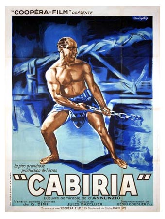 L’argument : A l’époque de la seconde guerre Punique, la petite Cabiria et sa nourrice Croesa sont enlevées par des pirates durant une éruption de l’Etna et vendues comme esclaves à Cartage. Le grand -prêtre Karthalo destine l’enfant à être immolée au dieu Moloch mais le romain Fulvio Axilla et son serviteur, le géant Maciste, réussissent à la sauver à la dernière minute. Avant d’être capturé Maciste confie Cabiria à Sophonisbe, fille d’Asdrubale.