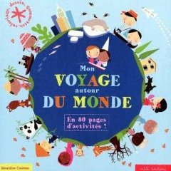 2. Dans la même veine et du même auteur, pour aller au-delà des frontières « Mon voyage autour du monde », toujours de Géraldine Cosneau (Mila Editions) avec un ouvrage plus conséquent de 80 pages, de quoi faire un belle balade à travers différentes cultures, sympa pour jouer les voyageurs immobiles, surtout quand il s’agit du Yemen (dont les passeports sont hors de prix) ou du Groenland (trop froiiiiid !).