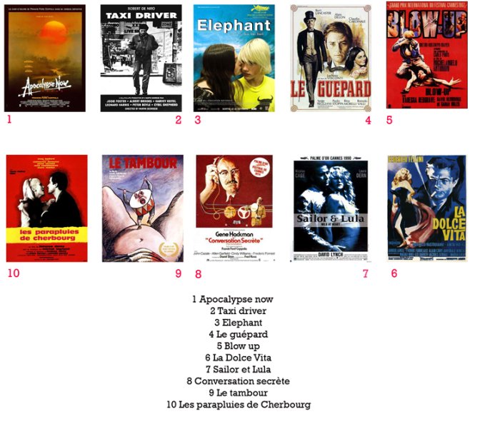 En attendant la Palme 2011, découvrez le classement de chaque rédacteur d’aVoir-aLire et le top 10 de la rédaction...