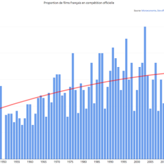 Selon les chiffres, effectivement, le cinéma français occupe une place de plus en plus importante dans la sélection officielle. Selon, l’étude, dans les années 1950 – 1960, la production française se situait à 10 %, contre actuellement 15%, à l’exception de 2012 où aucun film français ne fut retenu en sélection.