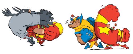 Vous pourrez admirer des planches originales du justicier et de ses frasques. Et cerise sur le gâteau, Tébo nous gratifiera, d’illustrations spécialement réalisées pour l’exposition, où Captain Biceps affrontera ses homologues Américains !