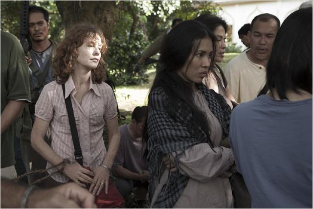Notre avis : Captive s’inspire de faits réels : en 2001 survinrent aux Philippines plusieurs enlèvements et prises d’otages, dont celle de l’hôtel Dos Palmas à Palawan, perpétrée par le groupe Abu Sayyaf. La séquence inaugurale nous plonge d’emblée dans la violence de l’attaque. La caméra de Mendoza se faufile dans les chambres et les embarcations avec une énergie sidérante, très proche du reportage. Cette nervosité ambiante, qui confère au film son allure de "survival", est le résultat d’une préparation singulière, que l’on croirait inspirée d’une émission de Real TV. Les deux groupes d’acteurs - captifs et terroristes - ont été séparés avant le tournage. Les séquences ont été filmées dans l’ordre du récit. Même s’il est difficile d’évaluer l’impact de tels procédés sur l’opus final, il n’est pas anodin que Brillante Mendoza ait recouru, pour préparer son film, à des méthodes télévisuelles. A plusieurs égards, Captive emprunte les codes du petit écran, comme dans cette époustouflante séquence où Huppert/Bourgoine, qui cherche à contenir son émotion pour formuler correctement son appel à l’aide, est interrogée par une reporter au milieu de la jungle. Les écrans sont par ailleurs visibles à plusieurs endroits du film : ce sont eux qui relaient l’information. Comme si le spectateur assistait à une prise d’otages en temps réel, il en devient lui-même captif, désireux de connaître l’issue du drame.