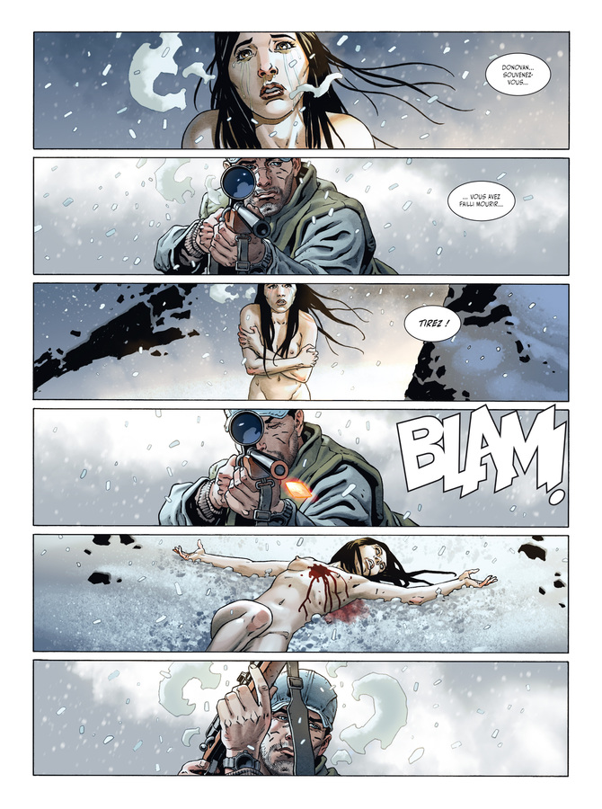 Quand un album commence par la fin, difficile de conserver le suspense longtemps... Entre la couverture et la première planche, cet opus baptisé Amarok (qui tire son nom d’un loup de la mythologie Inuit) montre les crocs et dirige directement le lecteur dans la poudreuse et le sang, sur les traces d’un loup gigantesque. Si l’option de la traque d’un loup-garou est rapidement envisagée, le reste de l’histoire pouvait aller plus loin : une station isolée, des trappeurs mal famés et une mafia locale à ne pas approcher, il y avait de bons éléments pour densifier cette histoire de chasse, qui va toute fois en rester là. L’ambiance est pour le coup réussie, avec de la neige, des disparitions, des rebondissements qui donnent à ce Carthago Adventure une atmosphère de lutte entre l’Homme et la Nature.