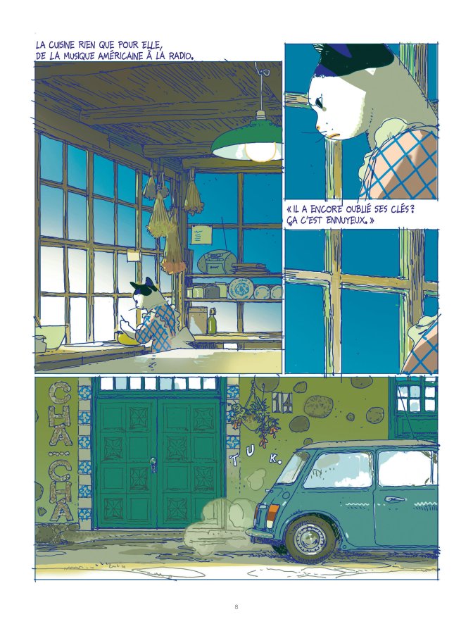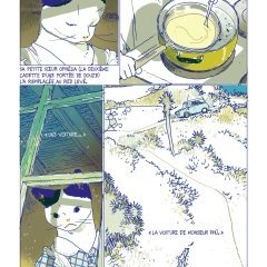 Dessins et couleurs sont d’une grande délicatesse, doux mais jamais mièvres. Ils établissent et véhiculent l’atmosphère si particulière : poétique et faussement surannée.
