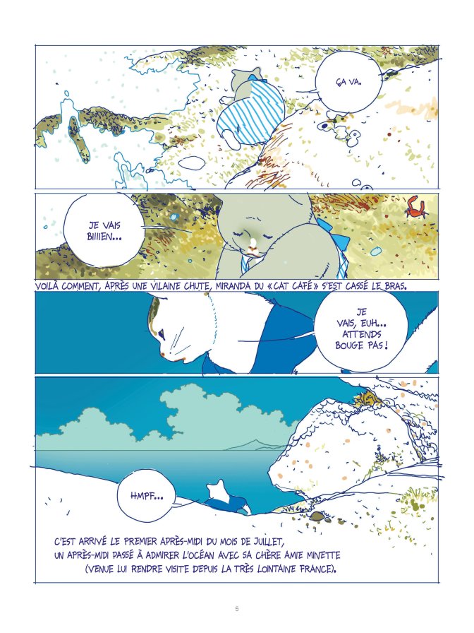 Résumé : Miranda, fine pâtissière travaillant au Cat Café, un fameux salon de thé implanté dans un endroit touristique, se casse un bras. Ophelia, l’une de ses sœurs, la remplace au pied levé. La jeune chatte se prend au jeu et conçoit des gâteaux toujours plus élaborés, originaux et appétissants. Cela n’est pas sans susciter la mauvaise humeur - et la jalousie ? - de Miranda.