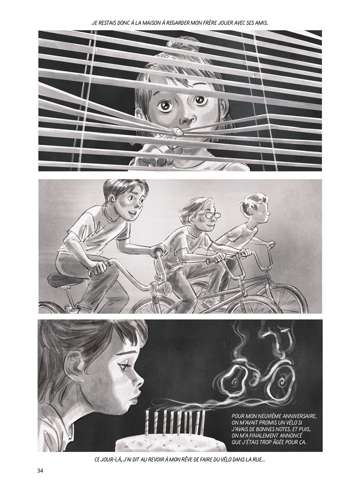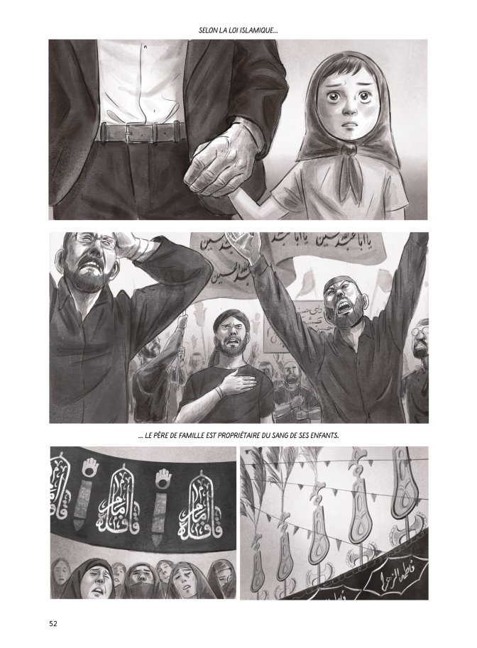 Artiste multiple, Mansoureh Kamari a donc choisi le vecteur du roman graphique pour se raconter, comme beaucoup l’ont fait, avec son trait et ses valeurs graphiques. Entièrement gris, l’album dégage de fait une tristesse d’une profondeur insondable, que ce soit ce père qui ne mérite pas qu’on le nomme, des rues ou un appartement sans lumière palpable, sans espoir auquel se raccrocher. L’unique lueur proviendra de ce corps de femme, avec ses cicatrices et ses défauts, beau dans sa nudité mais surtout dans son indépendance assumée, dans son air de défi, dans sa confiance retrouvée.