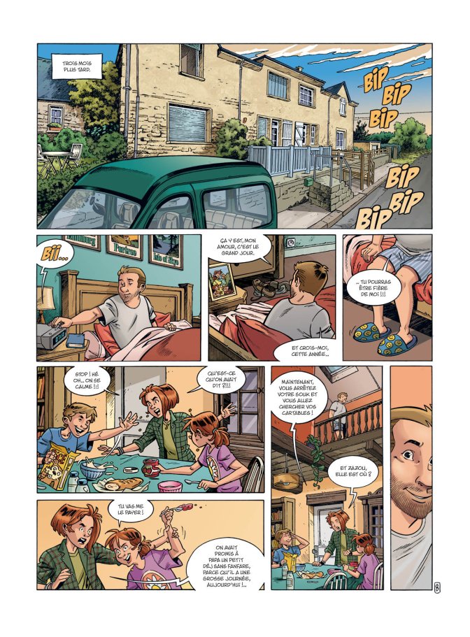 Critique : Cette histoire chorale met en scène une jolie galerie de caractères. Des protagonistes principaux aux personnages secondaires, tous sont marquants et attachants. Même ceux qui ne font qu’une courte apparition restent dans nos mémoires. Le récit passe d’une personne à une autre et mêle les différentes intrigues de chacun. Isa va-t-elle retrouver son marin parti pour les mers tropicales ? Roger parviendra-t-il à réaliser une magnifique fête du village ? Hippolyte, timide maladif, trouvera-t-il l’amour ? Dubrandon, le chef d’entreprise, sauvera-t-il sa société et ses employés de la faillite ? Et ainsi de suite. Tout un chacun vit sa vie, et nous les suivons avec plaisir. Projets farfelus, rires, tendresse, et beaucoup d’émotions parcourent les pages de cette BD.