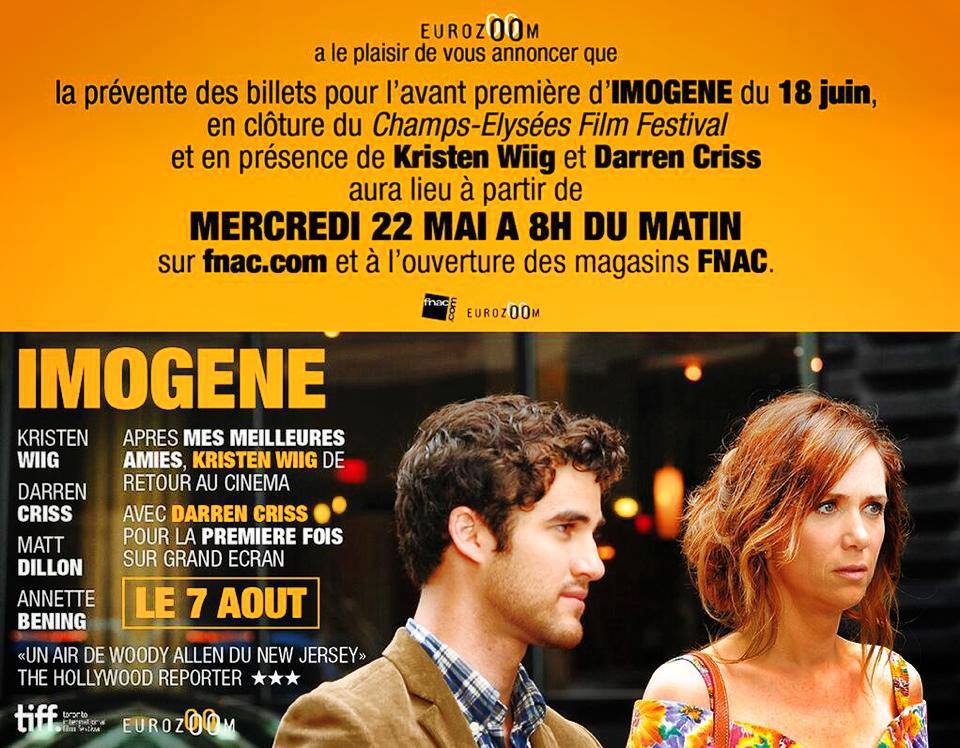 Struck de Brian Dannelly avec Rebel Wilson et la vedette de Glee, Chris Cofler, aura la lourde tâche d’ouvrir les festivités quand le truculent Imogene avec Kristen Wiig (Mes meilleures amies) et Darren Criss (tiens, un autre rejeton de Glee) clôturera la célébration cinéphile en présence des deux acteurs.