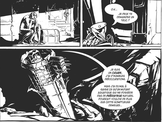 Cet album date de 2011 mais c’est la première fois qu’il est traduit en France. Hommage appuyé aux films fantastiques des années 50 et fortement inspirés des drames shakespeariens, il y a dans Chère Créature les ingrédients réussis d’une grande histoire. Il n’est pas aisé de rentrer dans l’histoire, on peut être allègrement surpris par l’ambiance, la situation et les dialogues utilisées par la créature des profondeurs. Mais on s’attache rapidement à cet être différent qui ne recherche finalement qu’une âme sœur, un amour à partager. On peut aussi noter de nombreuses touches d’humour, parsemées de par cette grande pièce de théâtre, qui à chaque fois font mouche.