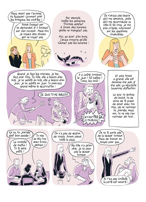 Dans cette nouvelle bande dessinée, Solenn Bardet s’empare donc d’une autre cause, celle des marâtres. En revenant au sens premier du terme, elle espère offrir un regard renouvelé sur les belles-mères, leur implication, mais aussi la difficulté de trouver leur place dans une famille recomposée. Après avoir rencontré plus d’une vingtaine de femmes, Elle a retenu 8 témoignages dont elle s’inspire fidèlement pour composer un récit choral, elle y met probablement aussi un peu de son vécu, car comme elle le présente en préface, elle est elle-même, marâtre.
