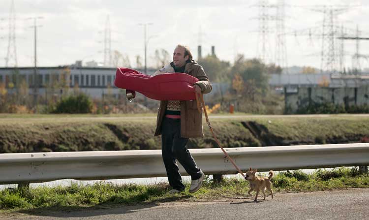 Il faut dire que, dans le petit monde de Jacques Blanchot, rien ne donne vraiment envie de se battre. Son emploi fastidieux dans une boutique qui suinte l’arnaque et sa vie quotidienne, au milieu d’une zone industrielle grisonnante, mais aussi toutes les relations humaines –depuis le maître d’hôtel antipathique jusqu’aux voyous qui rackettent son fils– sont le fruit d’un terrible cynisme de la part de Samuel Benchetrit. Il ne fait aucun doute, qu’avant d’être porté à l’écran, le livre a été écrit en plein épisode de dépression nerveuse. Et pourtant, grâce à l’univers baroque qui est le sien (tel qu’on a pu en prendre pleine mesure dans l’excellent film à sketchs J’ai toujours rêvé d’être un gangster), son adaptation parvient à ne jamais sombrer dans un ton trop pesant.