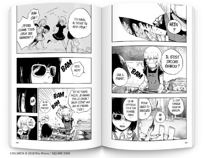 Children T1 s’adresse à un public averti. Non, pas de scènes sexuelles explicites, mais bien de la tripaille et du sang qui dégouline de partout, quelques séances de torture et des meurtres sordides. Tôru va vite comprendre que le mal réside derrière les apparences. Et nous avec lui. Certes, on peut s’attendre à une certaine horreur, car on sent que le lieu, l’ambiance vont déboucher sur quelque chose de gore, mais on est assez surpris par les événements. Si bien qu’au détour de certaines pages, des frissons glacés parcourent notre échine.
