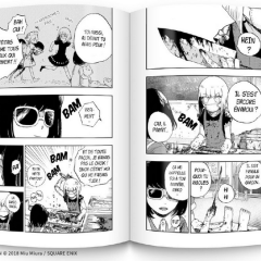 Miu Miura dessine des personnages manga classiques. Le noir et blanc est de rigueur à part dans les pages d’introduction qui sont en couleurs. Mais la caractéristique de ce seinen est son trait charbonneux, ses lignes denses, épaisses et ses hachures pour marquer le relief. Le mélange de tout cela apporte une matière au dessin, un relief presque poisseux qui se marie très bien avec l’ambiance. La composition sobre des planches confère à l’horreur tout son poids. Elle éclate au travers du dessin sans que Miu Miura n’ait besoin d’utiliser de cases explosées. Un choix qui contribue à nous maintenir vraiment dans l’histoire. Un petit bonus intrigant à la fin, suivi du teaser du second volume nous donne, bien évidemment, envie d’en savoir plus.