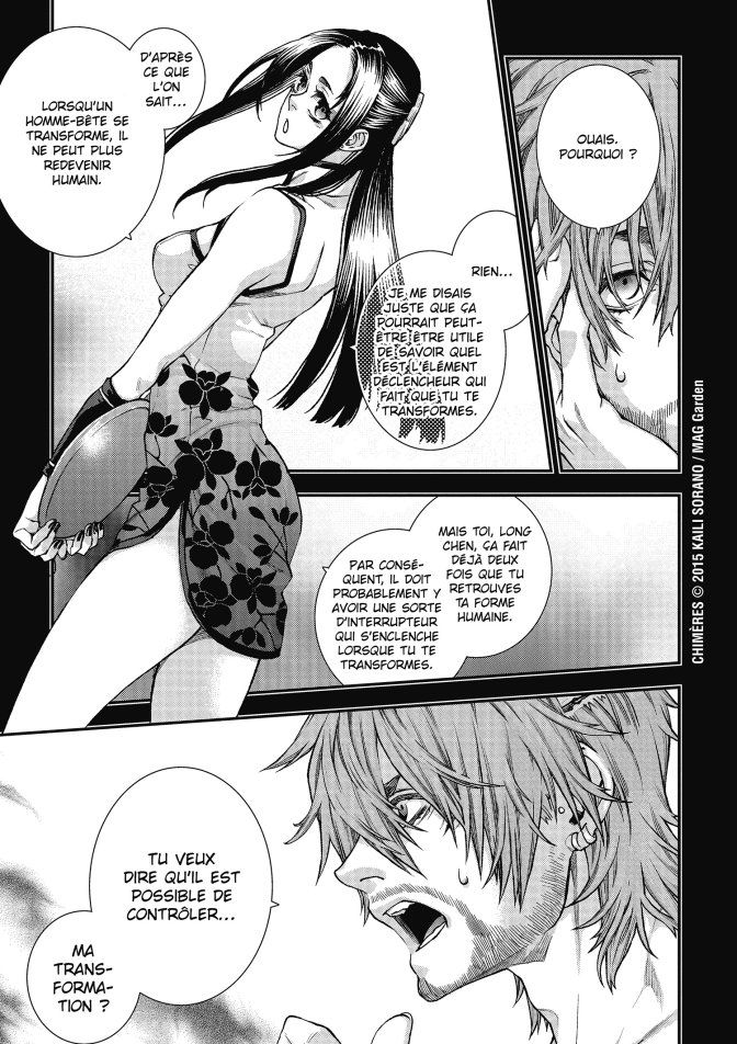 Un nouveau personnage entre en scène dans ce troisième tome, un des patrouilleurs, forces de l’ordre chargées d’exterminer les hommes-bêtes. De même, on en apprend plus sur les rapports entre Long Chen, seul homme-bête pouvant se contrôler, et les patrouilleurs qui ont tué ses semblables.