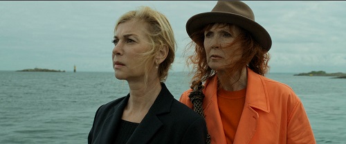 Le renvoi à La Dame dans l’auto avec des lunettes et un fusil est justement intéressant dans ce sens qu’il s’agissait là aussi d’un portrait de femme névrosée et que, déjà, le rapport à la mer était au cœur de son développement. Deux thématiques qui semblent donc chères à Godeau. Ici, il s’agit, non pas d’une mais de trois femmes : Chouquette, une femme acariâtre et mélancolique puisqu’enfermée dans ses rêves passés ; Diane, une hyperactive borderline ; et Jacqueline, la mère de cette dernière. Les deux premières sont respectivement interprétées par Sabine Azéma et Michèle Laroque. Or, si la première est en sous-régime (un jeu qui peut se justifier par la nature de son personnage), la seconde, comme à son habitude, en fait trop au point de rapidement devenir fatigante. Autant dire que le duo ne fonctionne pas une seconde.