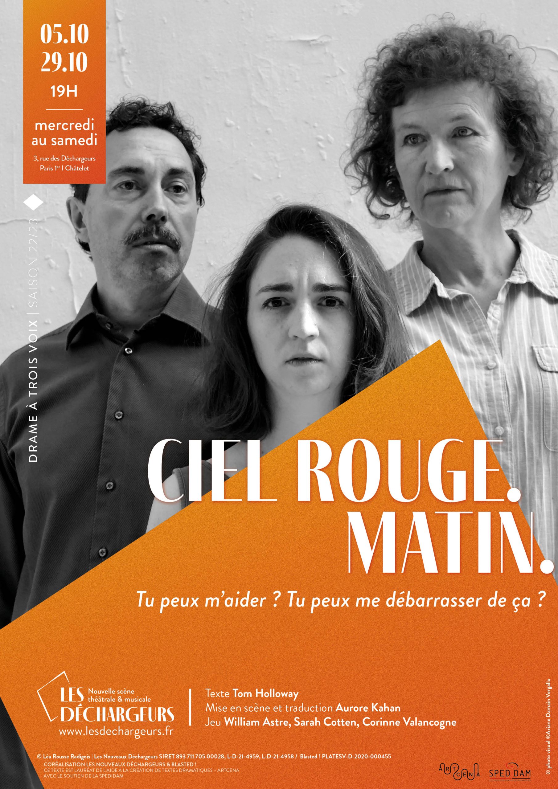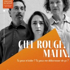 Ciel rouge. Matin est une pièce sur les non-dits et les malentendus souvent dictés par les règles et les conventions. C’est aussi un spectacle sur les rêves, les fantasmes et les désirs. Intimité et frustrations génèrent colère ou déprime. L’amour initial se transforme en haine par dépit. Seuls parmi leurs proches, les personnages ne sont pas vraiment entrés dans leurs propres vies, ils n’ont fait qu’esquisser quelques pas en avant.