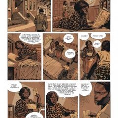 Bien entendu, le dessin joue également son rôle de vecteur des émotions et du réalisme ambiant. Le noir semble imprimé, véritable encre qui viendrait se placer sur des fonds tantôt rouges, bleus ou verts. Le blanc est absent, évité, parce qu’il occupe en vérité tout l’espace à cette époque. Le jais, l’ébène sera donc à l’honneur, les couleurs venant apporter des tonalités différentes par planche, par double page, par chapitre, pour éviter une œuvre en noir et blanc (même si le volume en tirage limité semble lui aussi magnifique par son contraste). D’un sujet inédit et d’actualité, le duo a su produire une œuvre magistrale, que le graphisme transcende. Il serait ainsi aisé de dire que déjà la couverture annonçait la couleur : une œuvre de lutte, de larmes et de liberté.