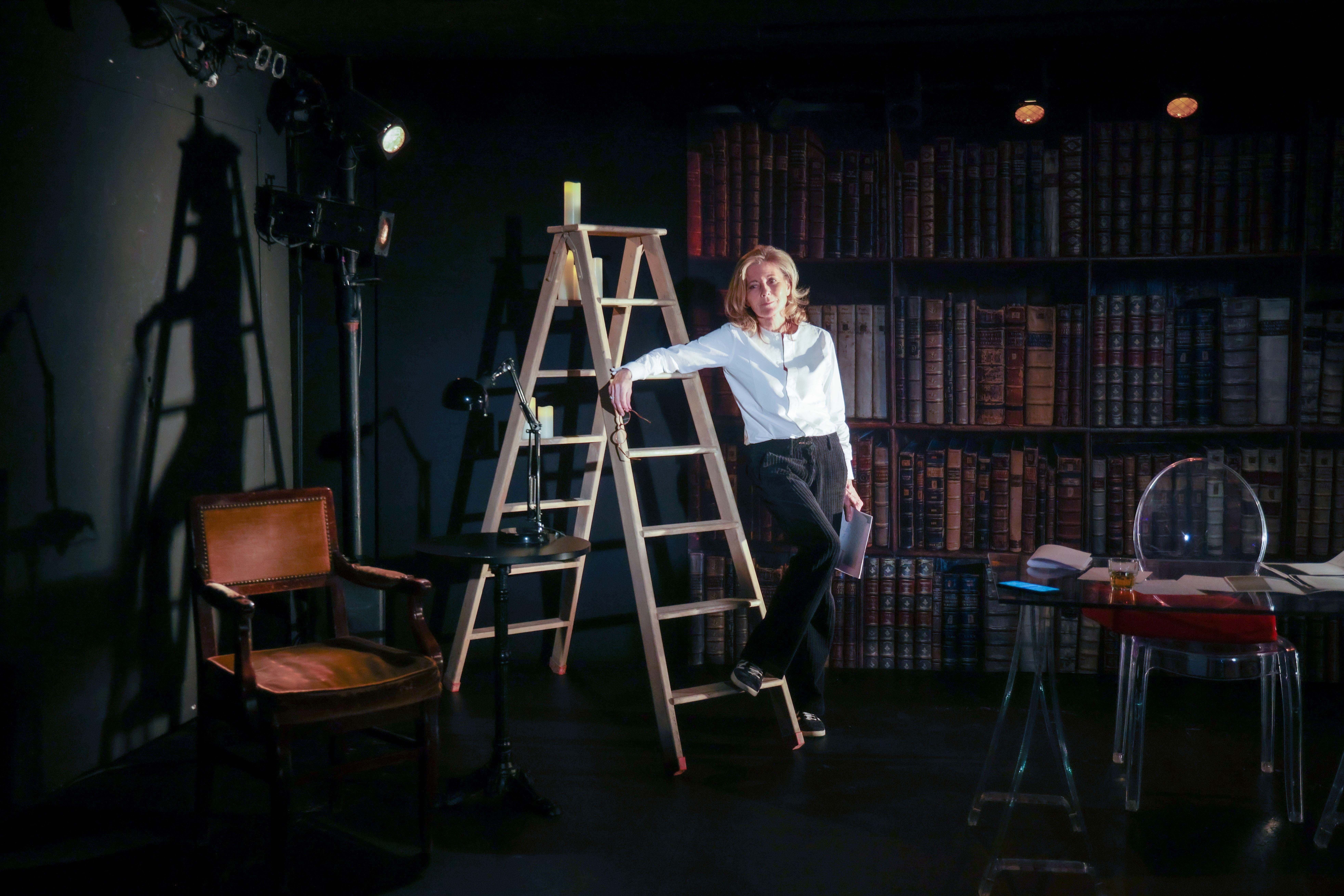Sobre et élégamment vêtue d’un ensemble pantalon-veste noir égayé d’une chemise blanche, notre narratrice se déplace dans un somptueux décor de bibliothèque, du bureau à l’échelle, et introduit de quelques commentaires personnels, chaque texte entrecoupé de notes de musique classique. Elle s’assied dans un large fauteuil face au public et, la voix claire et la diction précise, nous communique toute la beauté poétique du texte de Christian Bobin La plus que vive, ce cri du cœur déchirant d’un homme qui vient de perdre sa compagne bien-aimée.