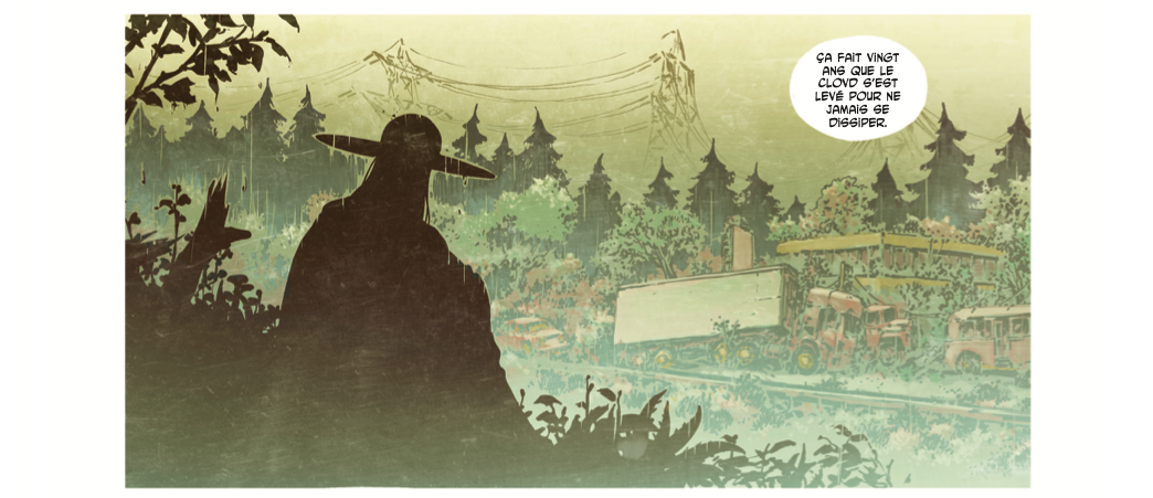 Résumé : Le Clovd est une brume épaisse qui a envahit le monde et fait chanceler l’humanité. Des monstres terrifiants, baptisés maraudeurs sont apparus avec cette brume, qui a provoqué la fin de la civilisation industrielle et de l’âge numérique. Les survivants de cette sombre période sont regroupés entre des clans semi-nomades qui s’organisent pour reconstituer une civilisation autour de « colonies » constamment en mouvement et récupérer le savoir de l’humanité. C’est notamment le rôle d’Isatis, qui parcourt le monde pour sauver des livres. Celle-ci fait la rencontre de Funérailles, personnage immortel qui a déjà vécu plusieurs apocalypses…