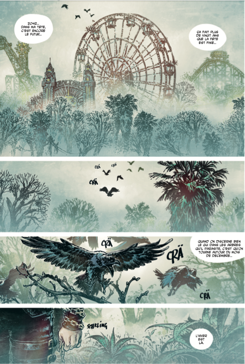 Ce premier volume pose les jalons d’un univers original et prometteur. La narration navigue habilement entre scènes d’actions, toujours aussi bien construites et représentées, et des moments de calme où le lecteur intègre les codes de l’univers. La palette de couleurs usitée par Maudoux, avec des teintes bleutées ou verdâtres, colle parfaitement avec l’atmosphère poisseuse et grisonnante de son univers. Ces couleurs froides sont rehaussée par des touches de couleurs chaudes, à commencer par la chevelure couleur de feu d’Isatis, personnage badass et attachant de cette nouvelle série.